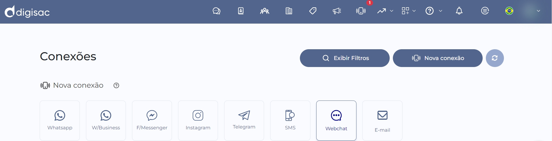Ao acessar o menu Conexões, clique em Webchat para iniciar as configurações e descobrir as novidades para o seu atendimento.