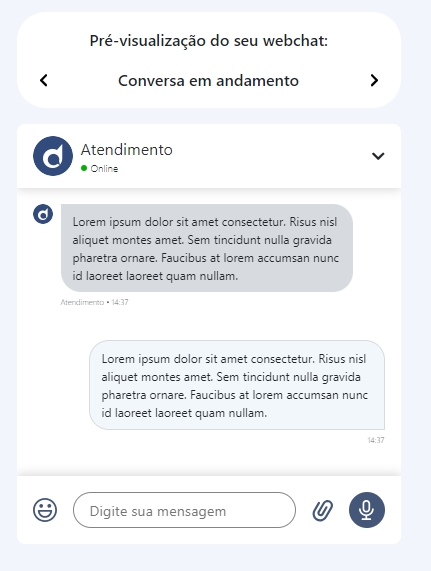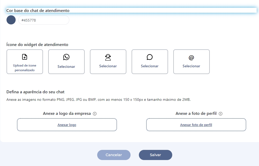 Aparência do seu chat: Adicione também um logotipo e uma imagem de perfil para fazer o Webchat combinar com a identidade visual da sua marca.