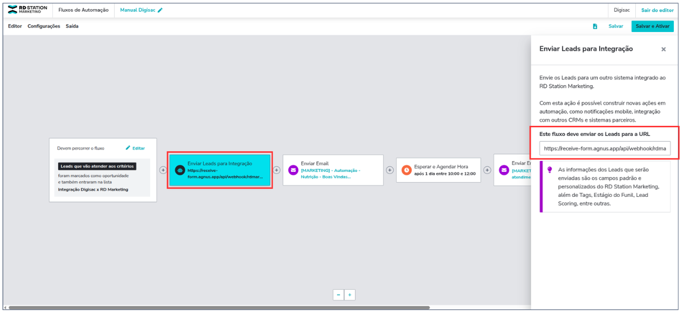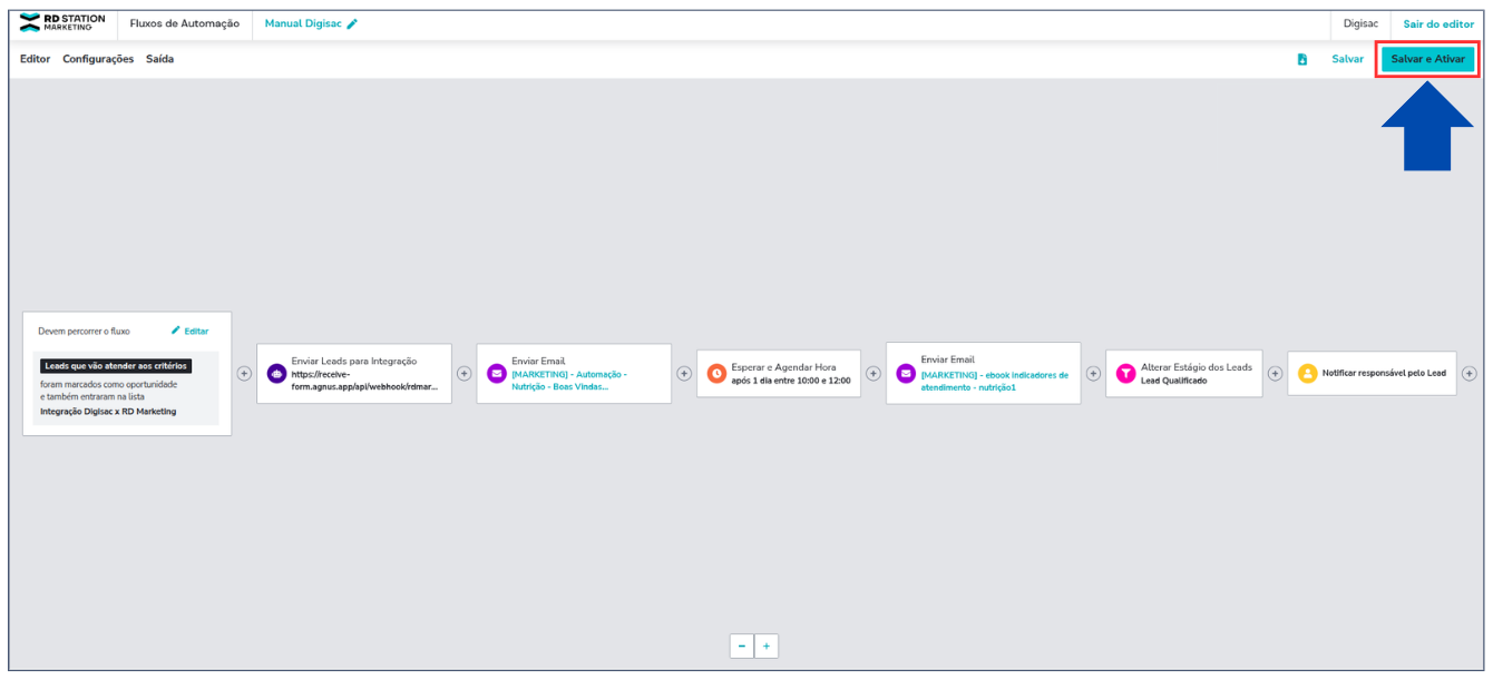 6. Finalize o fluxo conforme sua estratégia e depois clique em **Salvar e Ativar**.