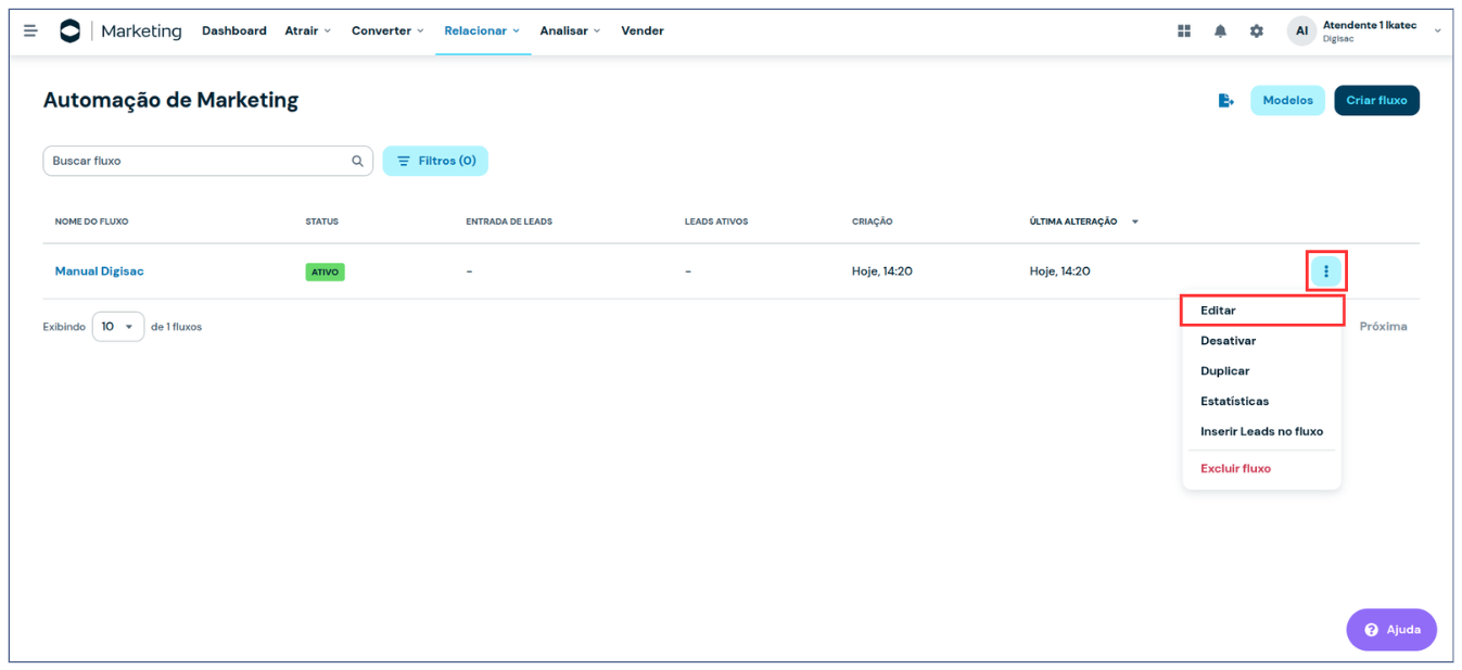 2. No fluxo desejado, clique nos **três pontinhos** e selecione **Editar**.