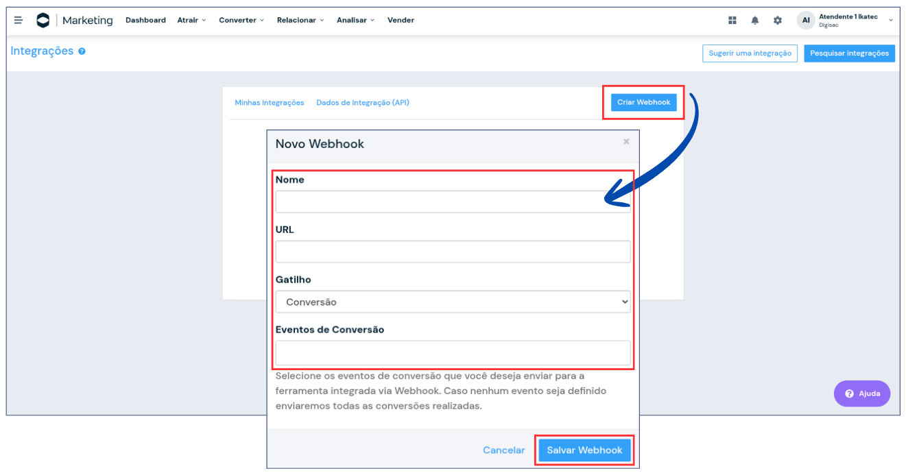 4. Após o preenchimento, clique em **Salvar Webhook**.